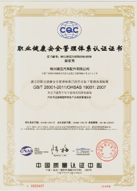 OHSAS 18001:2007职业健康安全管理体系证书中文版