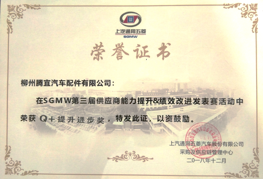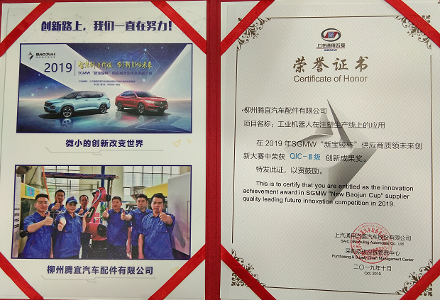 2019年“新宝骏杯”创新大赛奖杯及证书